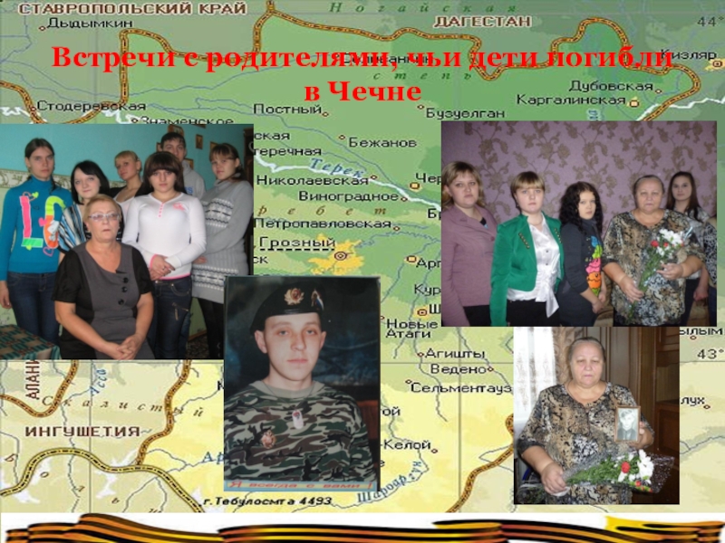 Слайд 4 Встречи с родителями, чьи дети погибли в Чечне