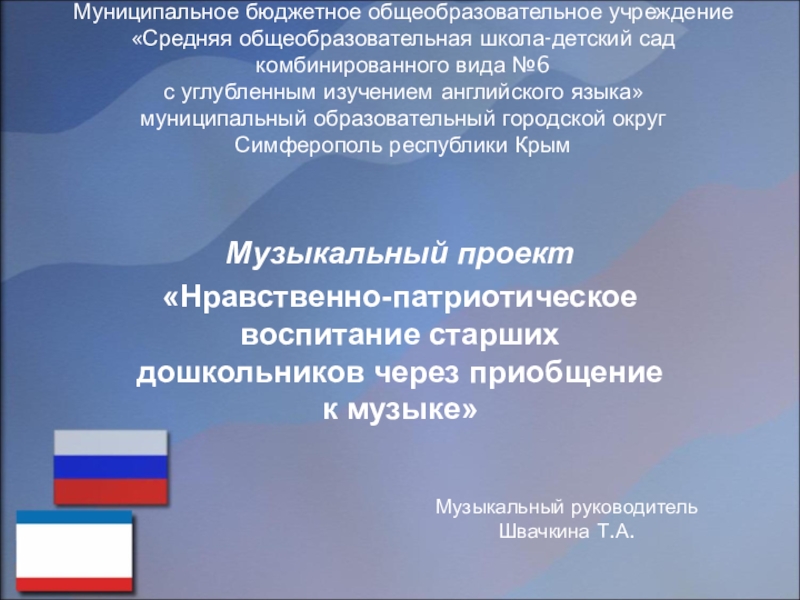 «Нравственно-патриотическое воспитание старших дошкольников через приобщение к музыке»
