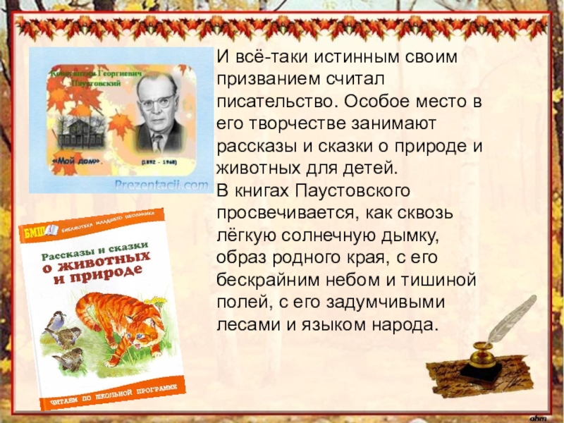 Презентация «КОНСТАНТИН ГЕОРГИЕВИЧ ПАУСТОВСКИЙ»Подготовила ученица    3 «А» класса Проскура Александра