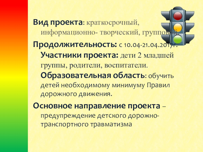 Основное направление проекта – предупреждение детского дорожно-транспортного травматизма