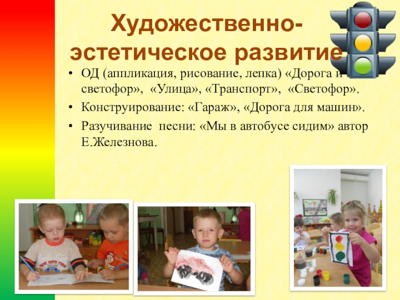 ОД (аппликация, рисование, лепка) «Дорога и светофор», «Улица», «Транспорт», «Светофор».
