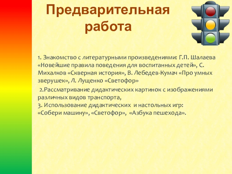 отгадай», «Светофор», «Наша улица», «Собери машину по частям», «Транспорт», «Один - много», «Назови машину», «Дорожные знаки», «Угадай транспорт».