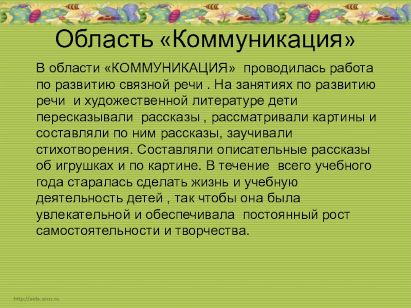 Слайд 11Область «Коммуникация»