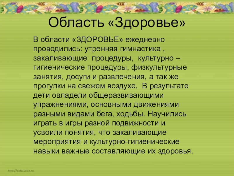 Слайд 9Область «Здоровье»