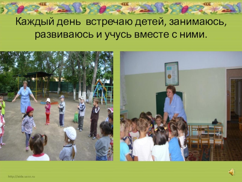 Слайд 6Каждый день встречаю детей, занимаюсь, развиваюсь и учусь вместе с ними.