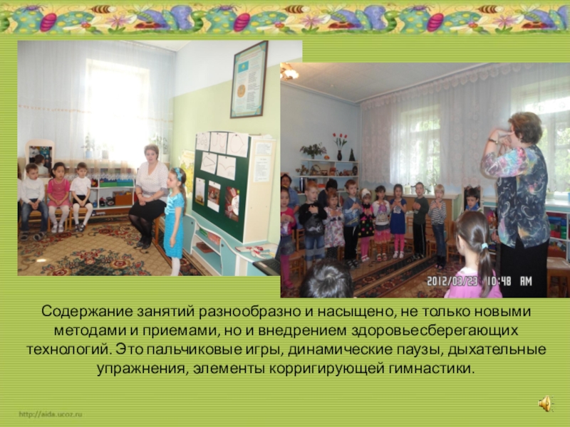 Слайд 27Содержание занятий разнообразно и насыщено, не только новыми методами и приемами,