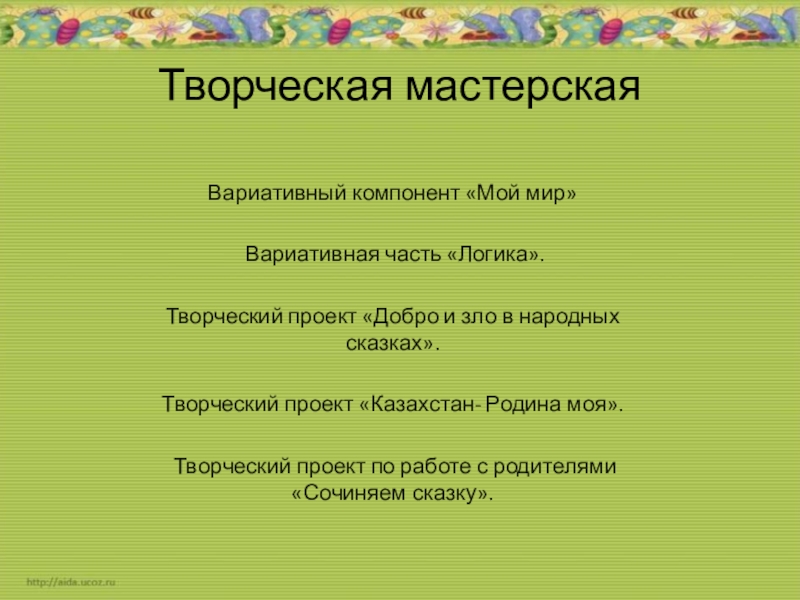 Слайд 20Творческая мастерская