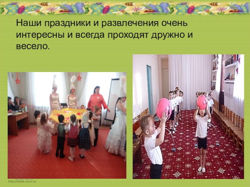 Слайд 38Наши праздники и развлечения очень интересны и всегда проходят дружно и