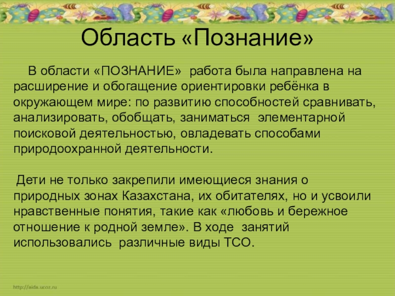 Слайд 15Область «Познание»