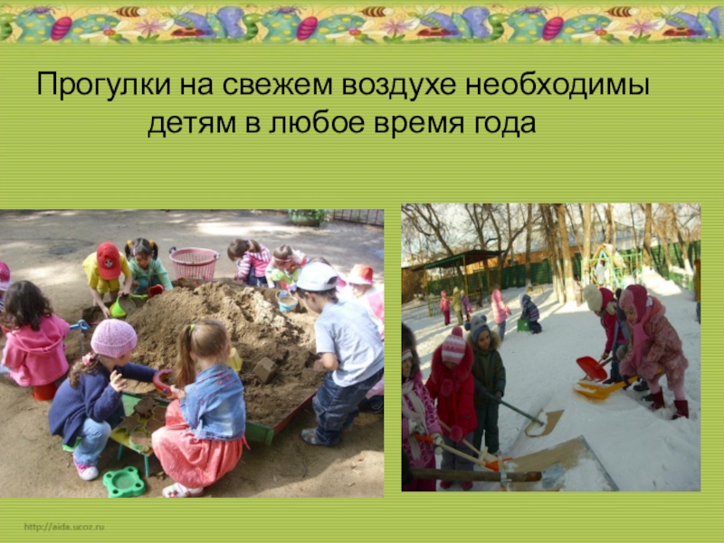 Слайд 41Прогулки на свежем воздухе необходимы детям в любое время года