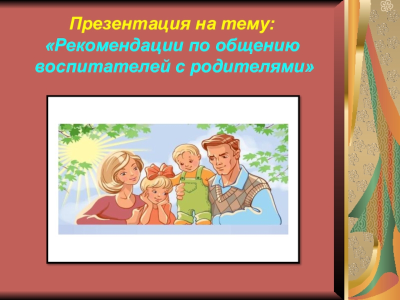 Презентация на тему: «Рекомендации по общению  воспитателей с родителями»