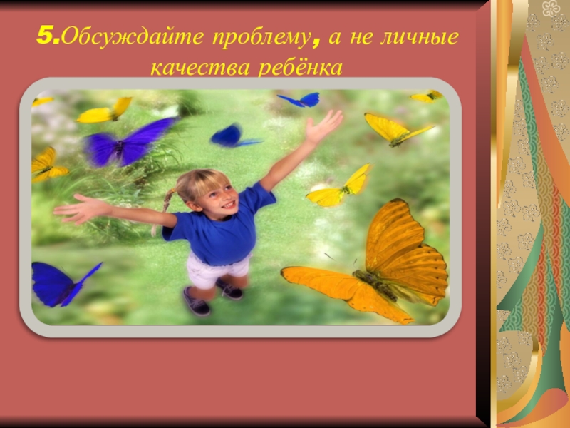 Слайд 85.Обсуждайте проблему, а не личные качества ребёнка