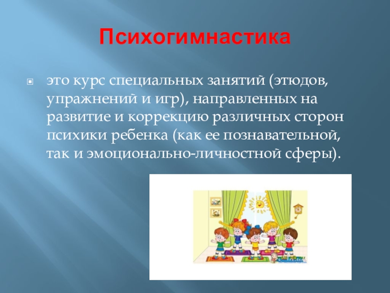 Цель: коррекция настроения и отдельных черт характера ребенка, тренинг моделирования стандартных ситуаций.