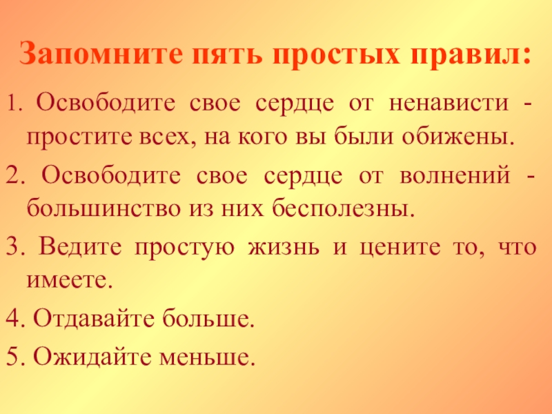 2. Освободите свое сердце от волнений - большинство из них бесполезны.