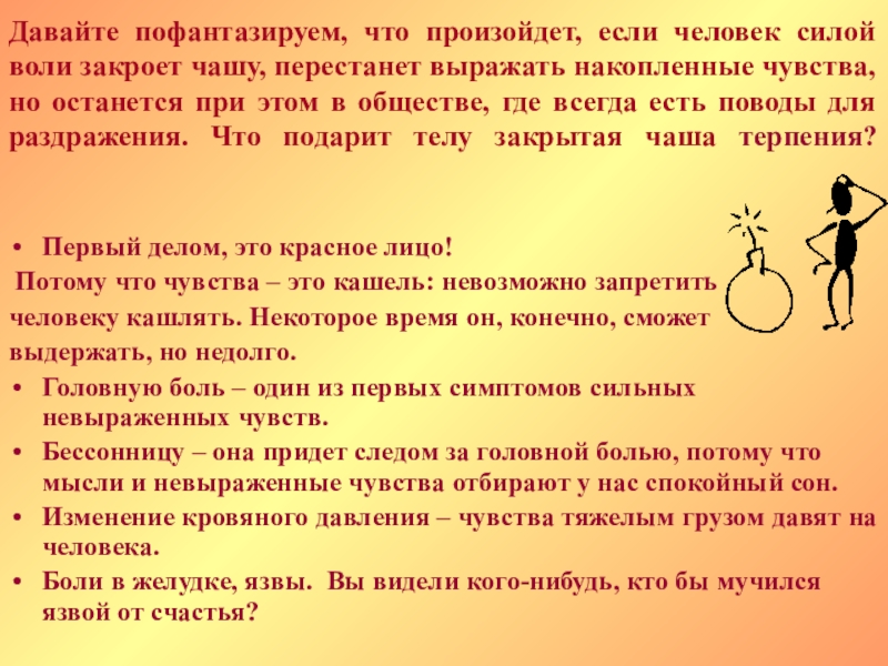 Слайд 11Давайте пофантазируем, что произойдет, если человек силой воли закроет чашу, перестанет