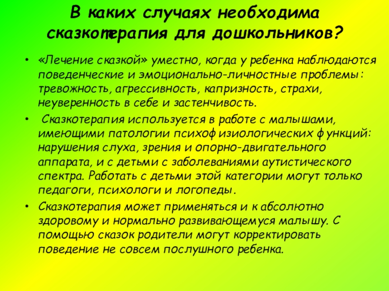 Слайд 3В каких случаях необходима сказкотерапия для дошкольников?