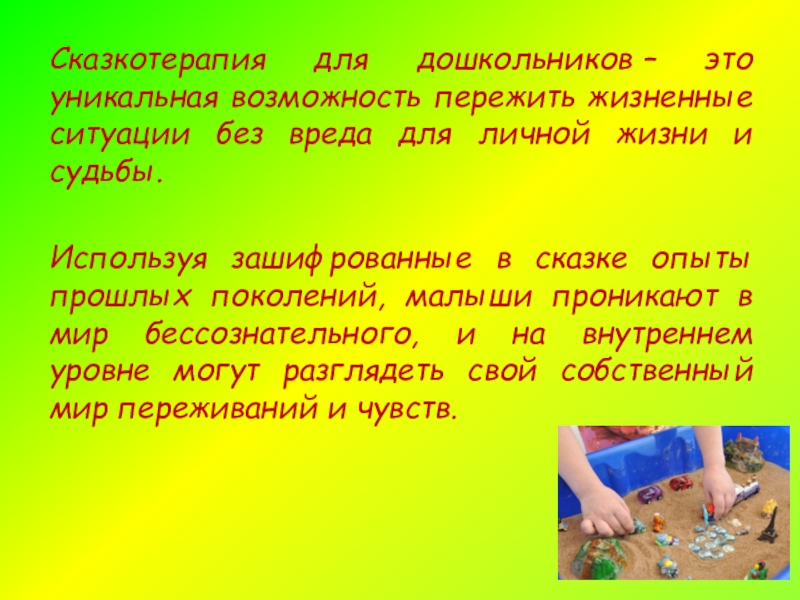 Слайд 2Сказкотерапия для дошкольников – это уникальная возможность пережить жизненные ситуации без вреда