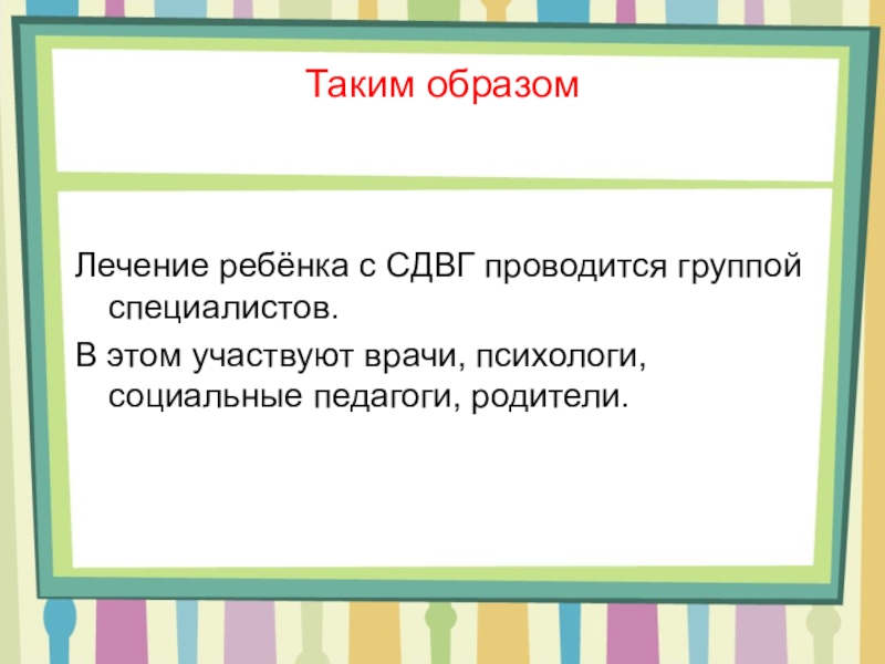 Слайд 14Лечение СДВГ