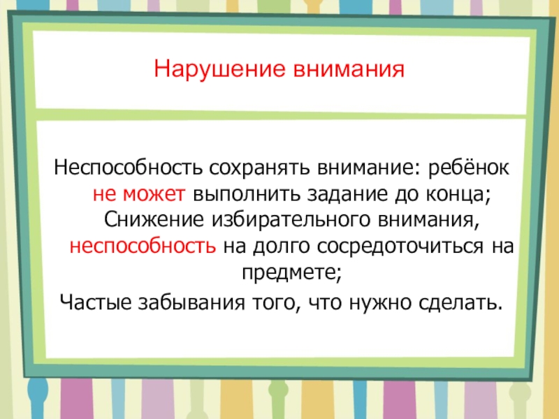 Слайд 7Нарушение внимания