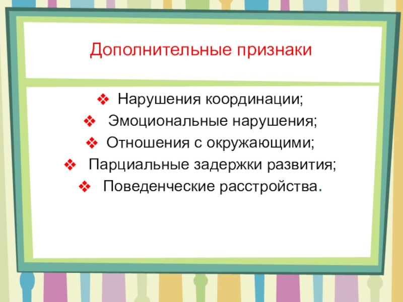 Слайд 12Дополнительные признаки