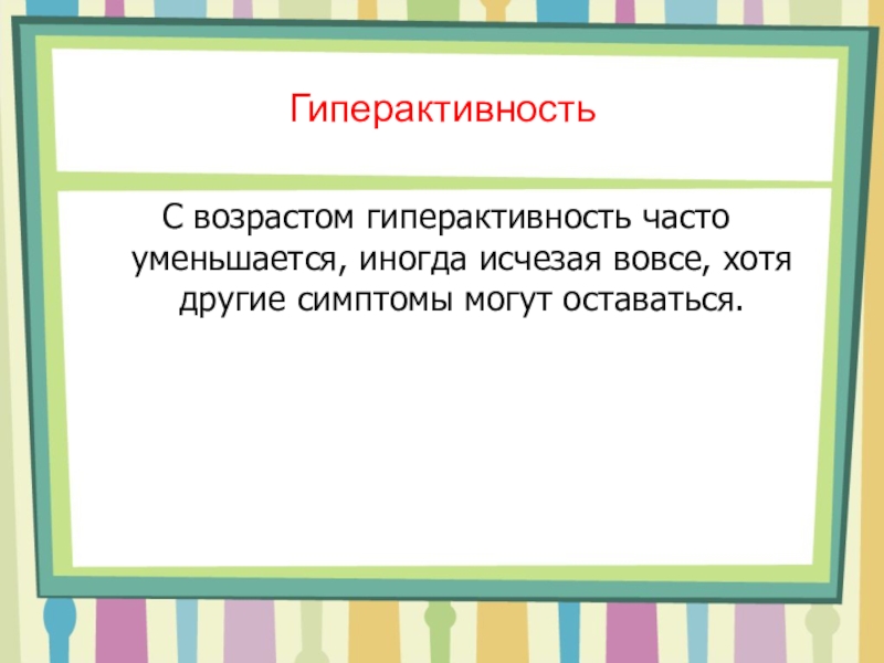 С возрастом гиперактивность часто уменьшается, иногда исчезая вовсе, хотя другие симптомы
