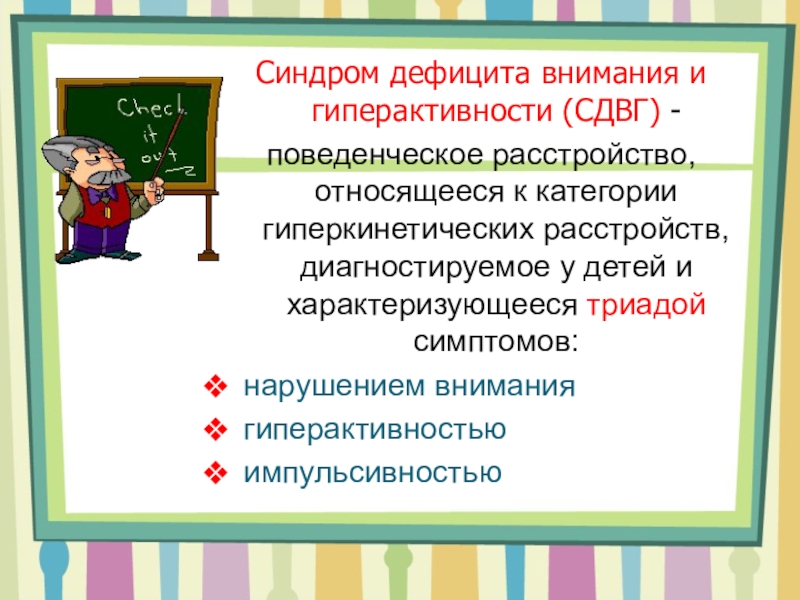 Слайд 2Синдром дефицита внимания и гиперактивности (СДВГ) -