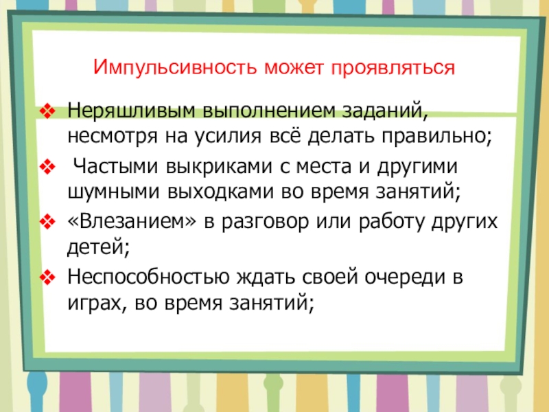 Слайд 9Импульсивность может проявляться