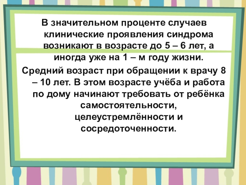 Слайд 6В значительном проценте случаев клинические проявления синдрома возникают в возрасте до