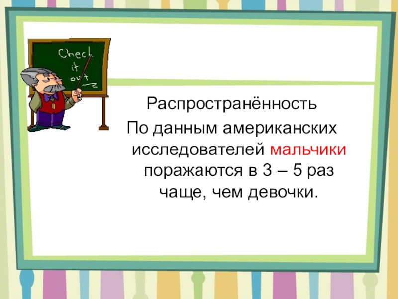 По данным американских исследователей мальчики поражаются в 3 – 5 раз