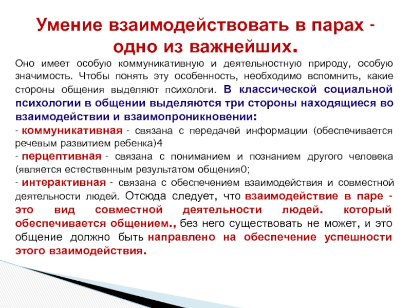 Слайд 4Умение взаимодействовать в парах - одно из важнейших.