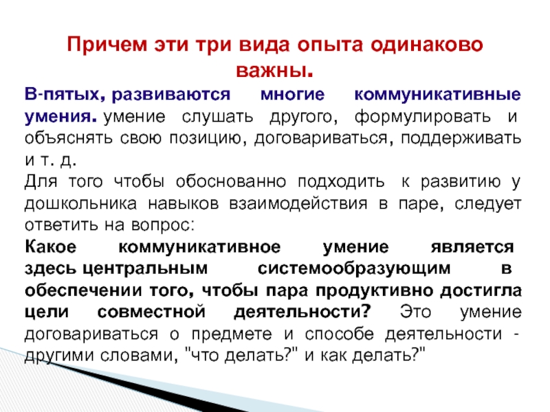 Слайд 6Причем эти три вида опыта одинаково важны.