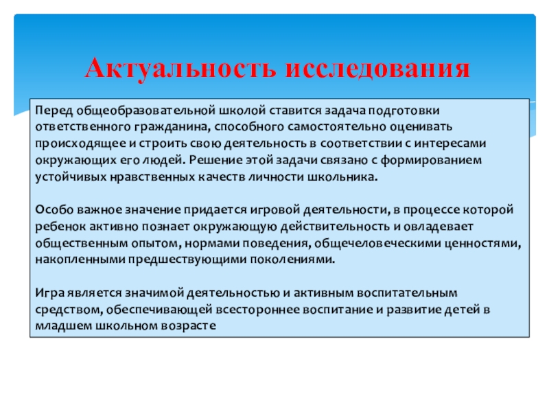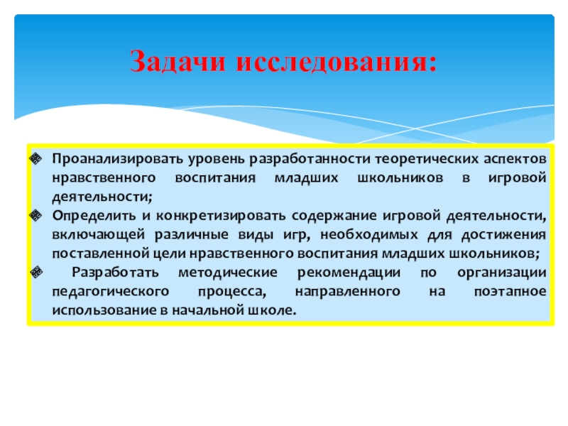 Предметом исследования является игровая деятельность как средство нравственного воспитания младших школьников.