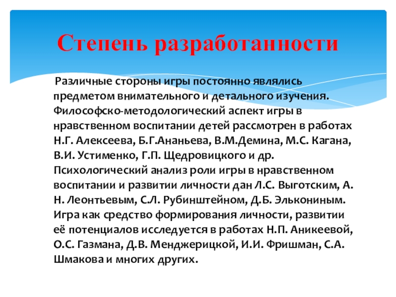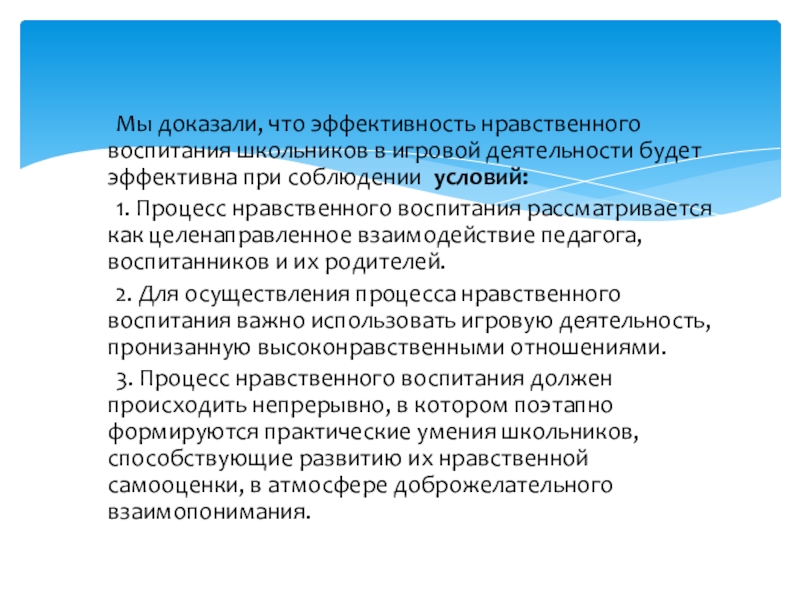Объектом исследования является процесс нравственного воспитания детей младшего школьного возраста в игровой деятельности.