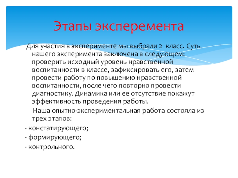 Этапы эксперемента