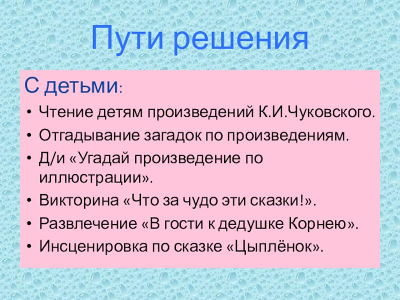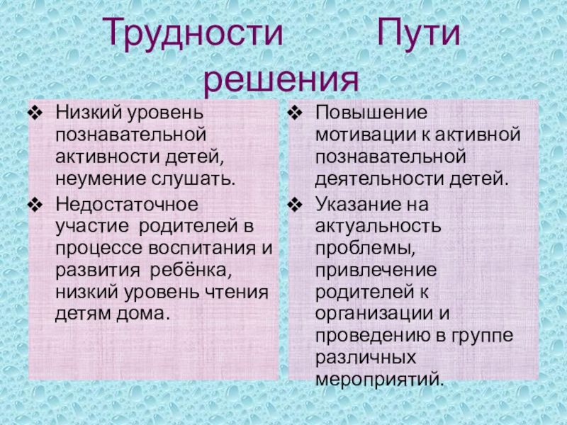Указание на актуальность проблемы, привлечение родителей к организации и проведению в группе различных мероприятий.