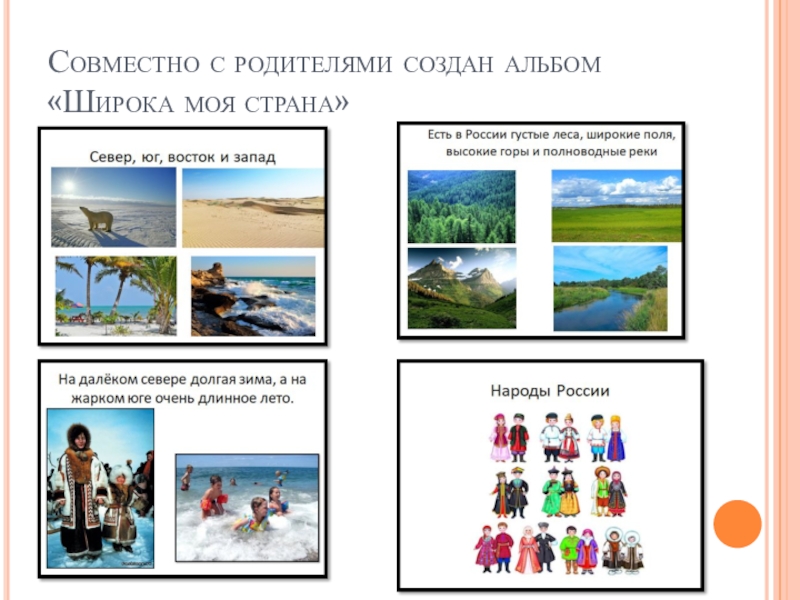 Слайд 7Совместно с родителями создан альбом «Широка моя страна»