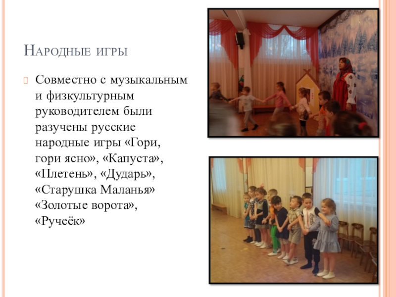 Совместно с музыкальным и физкультурным руководителем были разучены русские народные