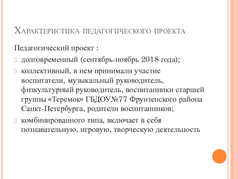 Слайд 4Характеристика педагогического проекта
