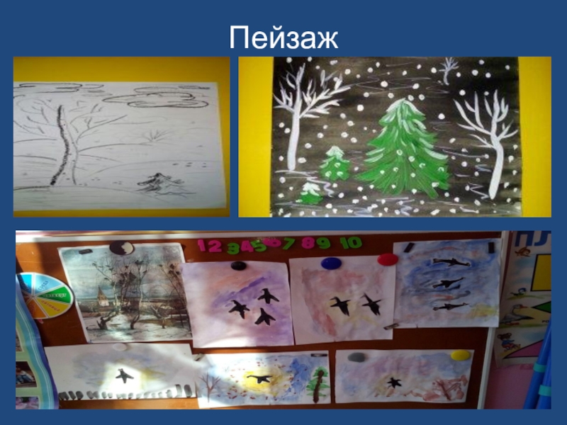 Предпосылки к определению цели детьми: педагог пригласил детей на выставку картин художников и предложил отгадать, как называются картины.