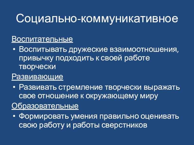 Воспитывать дружеские взаимоотношения, привычку подходить к своей работе творчески