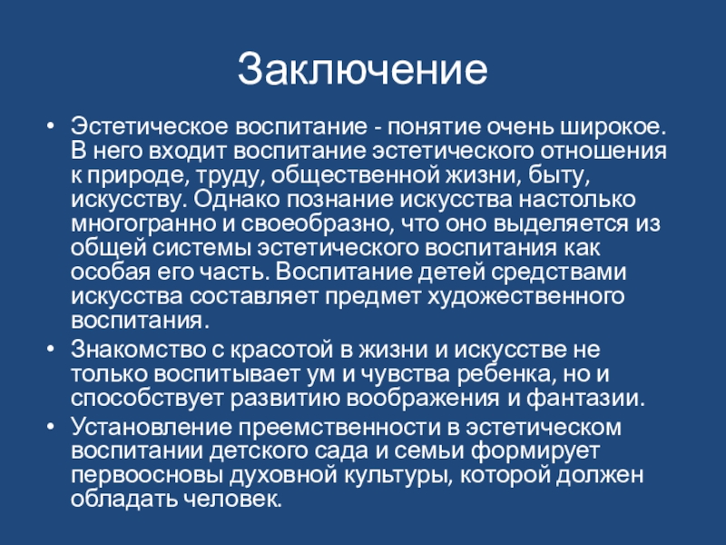Эстетическое воспитание - понятие очень широкое. В него входит воспитание эстетического