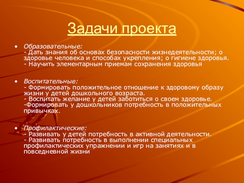 - Формировать положительное отношение к здоровому образу жизни у детей дошкольного возраста.