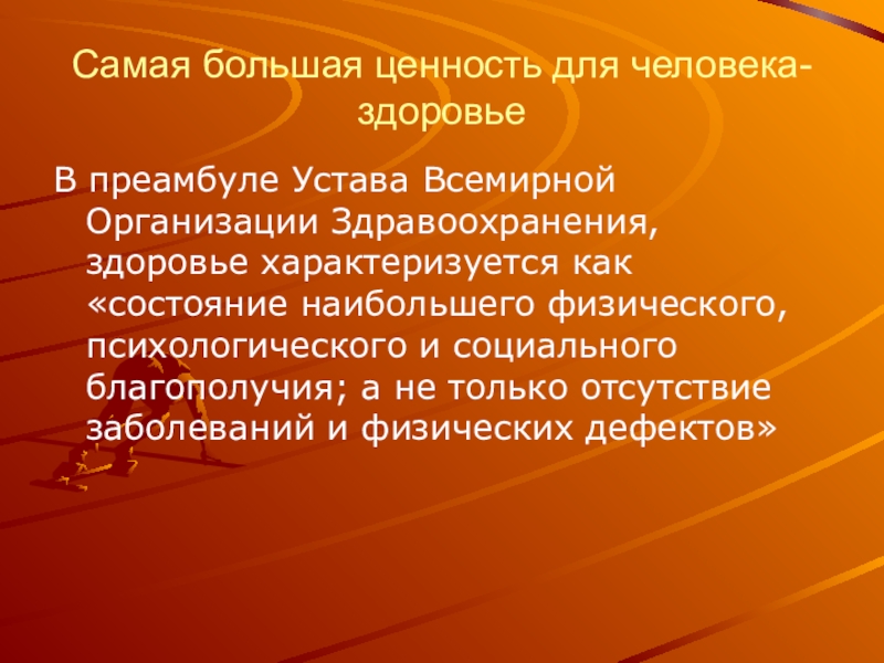 Слайд 3Самая большая ценность для человека-здоровье