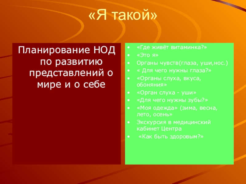 Планирование НОД по развитию представлений о мире и о себе