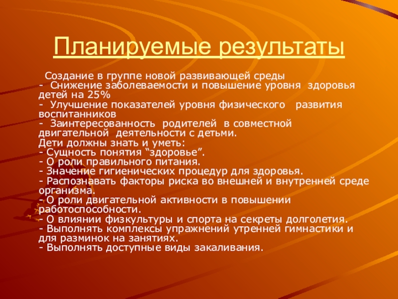 заболеваемости и повышение уровня здоровья детей на 25%