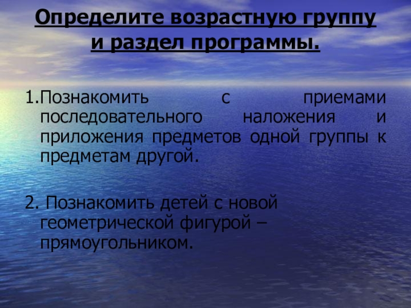Слайд 21Определите возрастную группу и раздел программы.