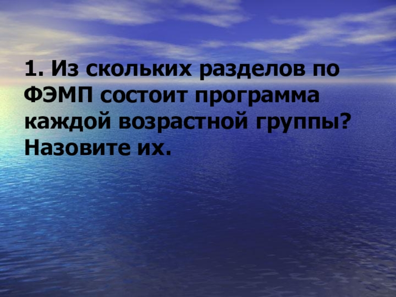 Слайд 13 1. Из скольких разделов по ФЭМП состоит программа каждой возрастной группы?