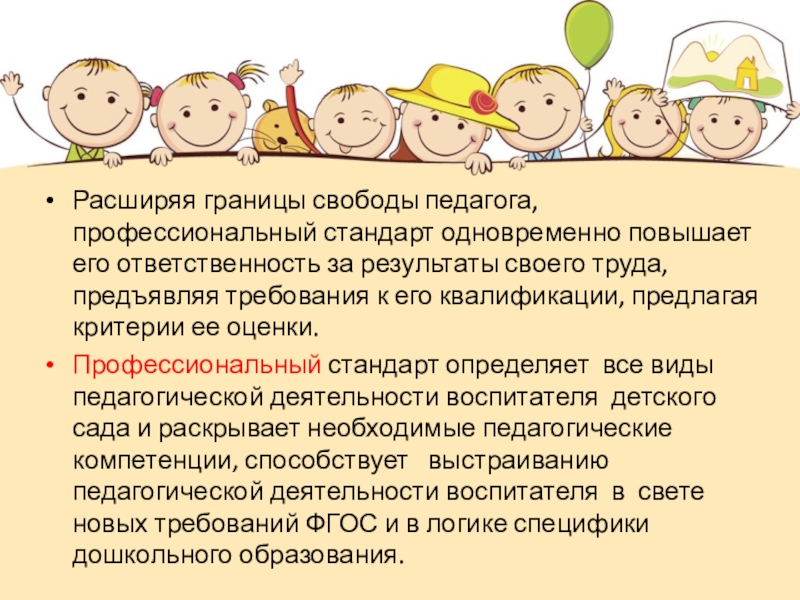 Слайд 3Расширяя границы свободы педагога, профессиональный стандарт одновременно повышает его ответственность за