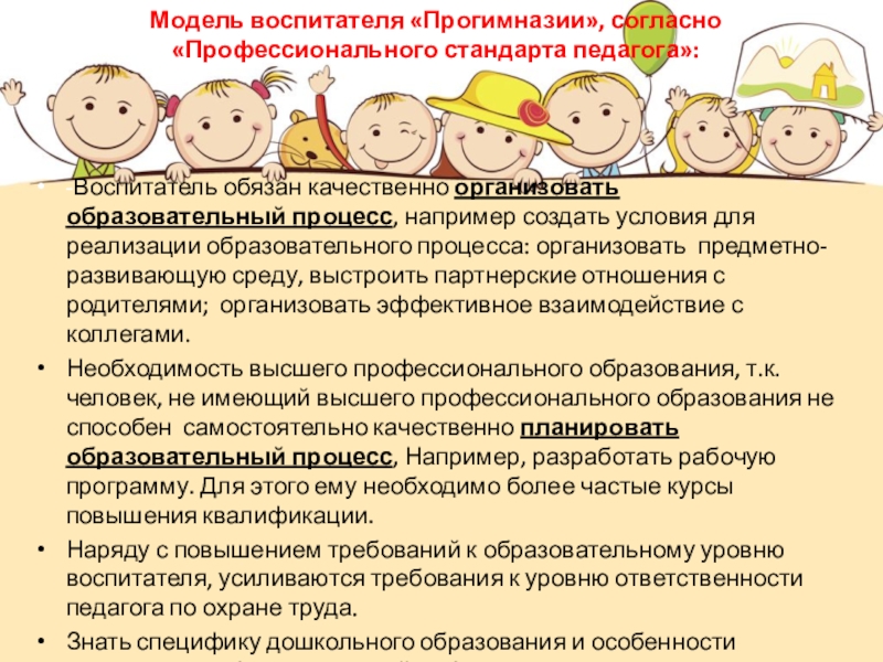 Слайд 16Модель воспитателя «Прогимназии», согласно «Профессионального стандарта педагога»: