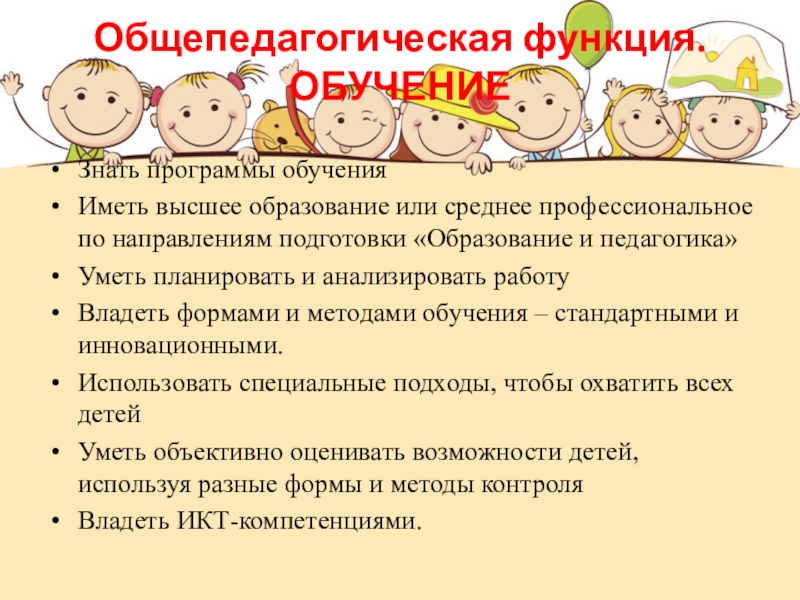 Слайд 12Общепедагогическая функция. ОБУЧЕНИЕ